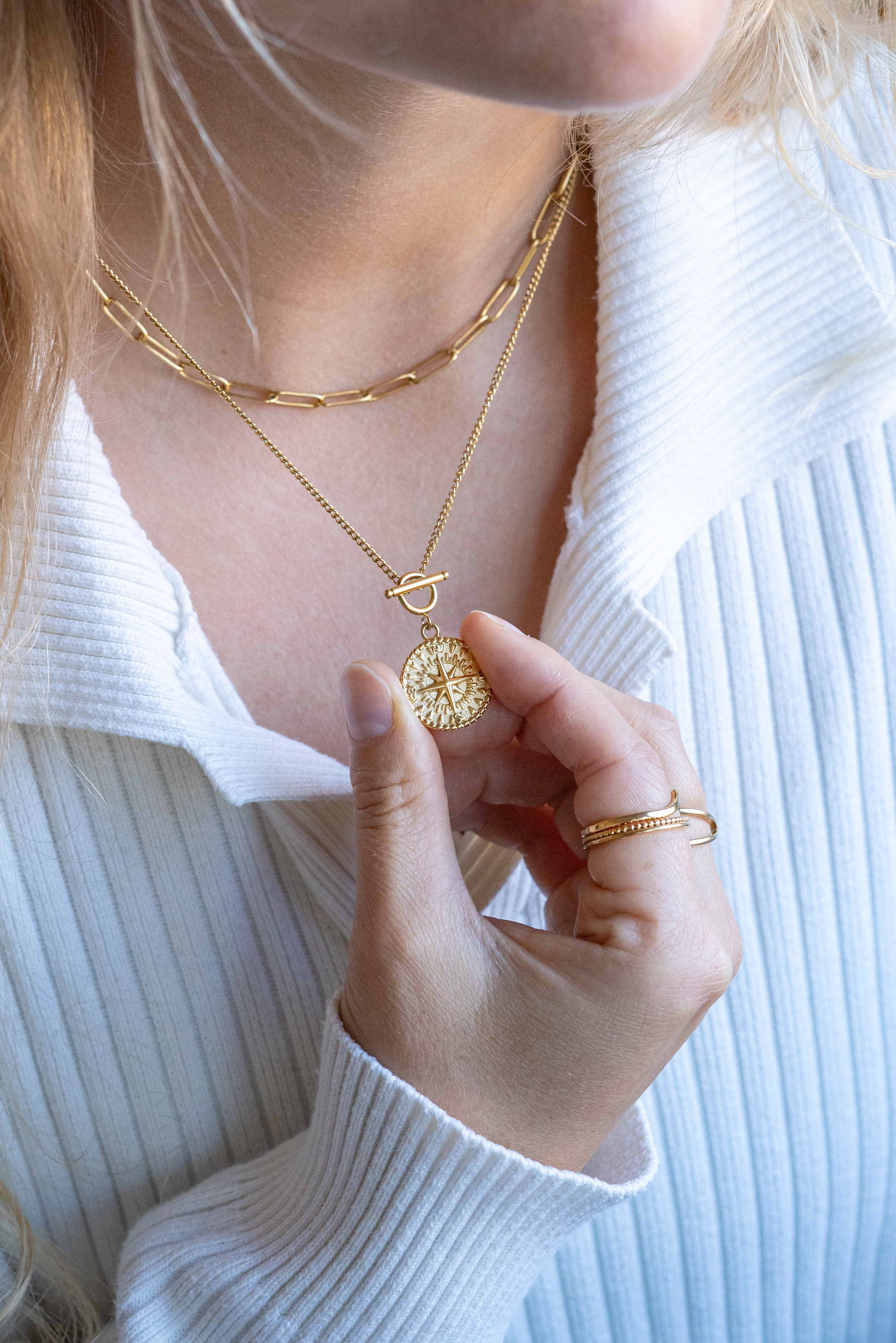 BonnyCompass Kette mit Kompass Anhänger Gold